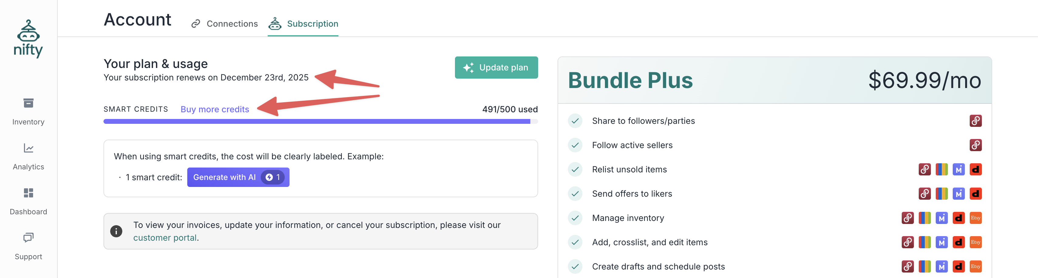 **Note:** No **Smart Credits** are used when syncing your inventory or performing basic listing management tasks.